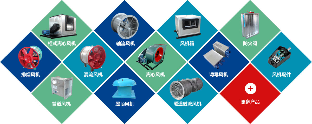 公司产品规格齐全,主要产品包括:离心风机、屋顶风机、排烟风机等及其他风机配件产品。产品