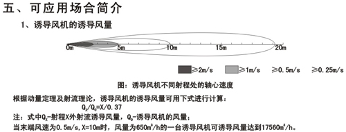 一。特性及应用 诱导风机是无风道射流诱寻通风系统的一部分,它与送风风机,排风风机组成整个系统。其原理是由以系统设计,适当布置的多台诱导风机喷嘴射出的定向高速气流,诱导室外的新鲜空气或经过处理的空气,在无风管的条件下将其送到所要求的区域,实现最佳的室内气流组织,以达到高效经济的通风换气效果。使用无管道射流诱导通风系统时,可省去设计,制造,安装风管及其它配套工程方面的费用,这部分费用比使用的诱导风机机组昂贵的多,而且以整个层面为通风风道,送风风机,排风风机所需要风压比使用管道时小的多,这样就可以选用大风量较低风压的风机,使所需功率降低,大幅地降低了运行成本和投资费用。当送排风机停止运转时,诱导风机仍可运转,起到局部通风换气的作用。 诱导风机内置高效率离心风机,具有明显的噪声低,体积小,重量轻,吊装方便(立式,卧式安装均可),维护简单,已广泛配套应用于地下停车场,体育馆,车间,仓库,商场,超市,娱乐场所等大面积场合的通风。 YDF-I型诱导风机有立式和卧式二种结构形式,立式用L表示,卧式用W表示;如:YDF-6L.。电机采用风机专用单相电机,220V50Hz,也可配用三相电机。 YDF-II型诱导风机为柜式箱体结构,卧式安装,皮带传动,配用三相电机。![]() 三。诱导风机数量的计算 所需诱导风机的台数,在考虑通风方式(机械送排风,自然进风机械排风),有无隔墙,空间形状的前提下,按每台诱导风机所要承担的面积计算,可参照下表确定: 四。安装布局说明 对地下停车场,可有效地排除汽车排放的一氧化碳及其它污染气体,节省层高空间,方便其它管道布置,通风换气的效果比传统的风管通风系统更佳。 体育场馆,室内游泳池,展览中心等高大空间的建筑物,冬季时的热空气下送是个难题,通过使用诱导风机,可有效地解决上部热空调气流组织理想,消除死角,使各部位都能保持舒适的温度。 |